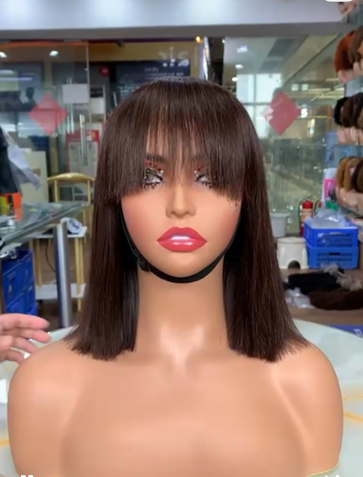 100% human hair bang wig Colour 4 brown 10 inches 200g
